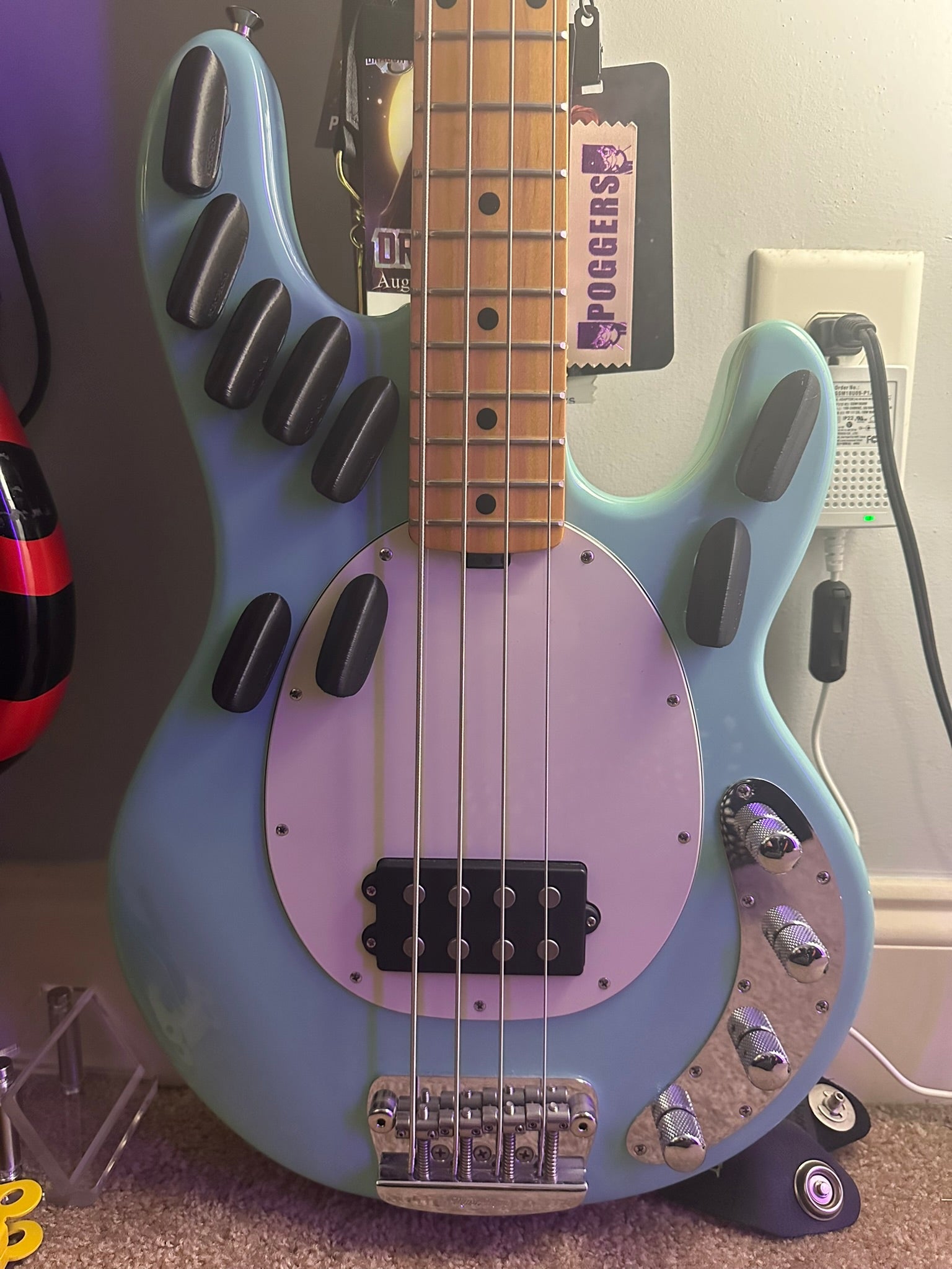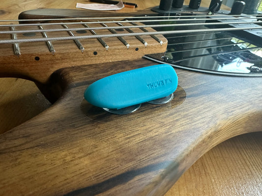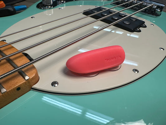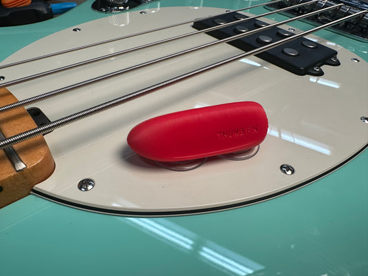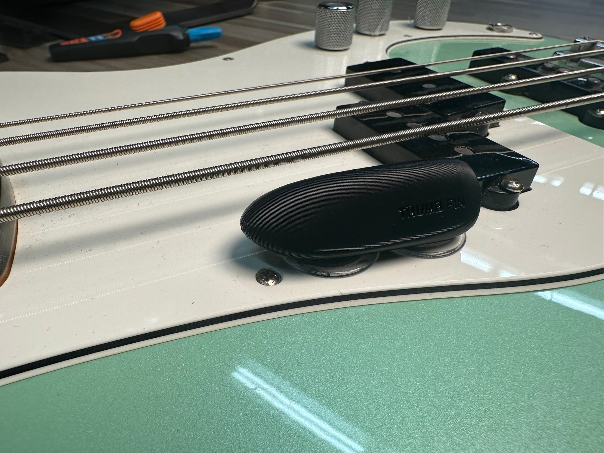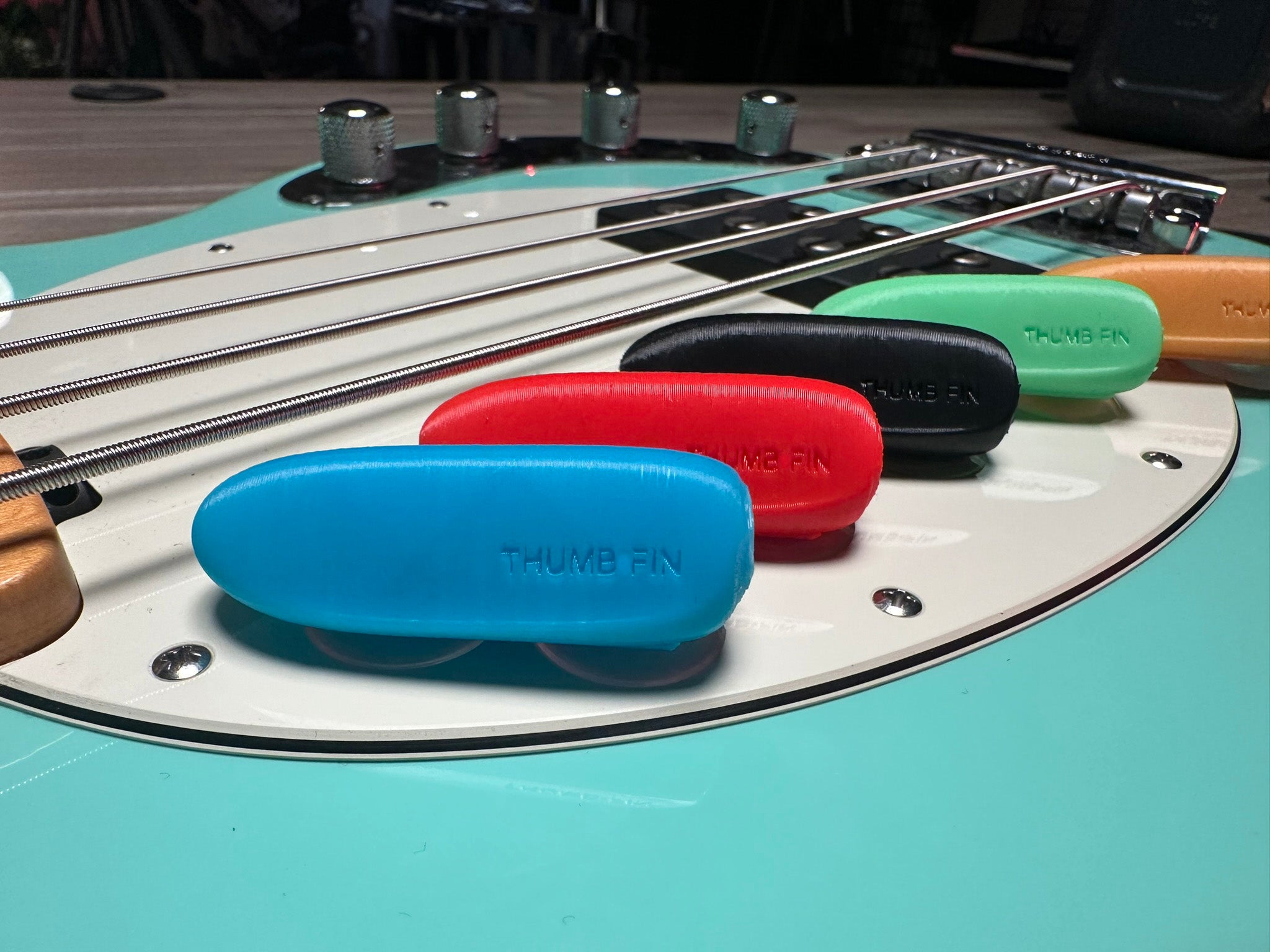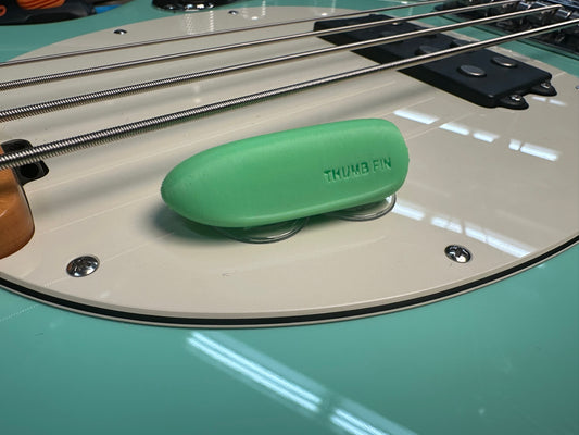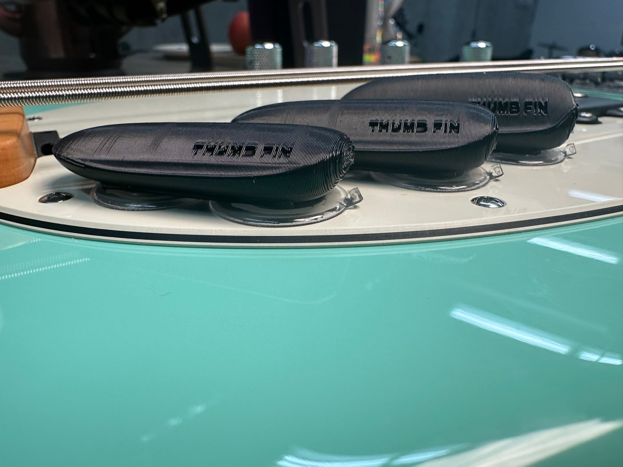I own a 15 year old Fender P bass with original single coil split pick ups. Pick up screws mounted on the edge where your thumb would normally rest. Placing my thumb on the pick would always bother me after playing a short while. The thumb Finn was an easy non evasive product which I placed on the pick guard & only took seconds to mount with the small suction cups that were attached to the Finn Thumb rest. Comfortable design, multiple colors to choose from & easty to remove to make adjustments. Over all I really like the product & only reason I gave it 4 stars was due to the price $20.00 each. But I would still purchase it again. Because of its ease to mount, comfortable to rest your thumb & that it won’t scratch or blemish your guitar.